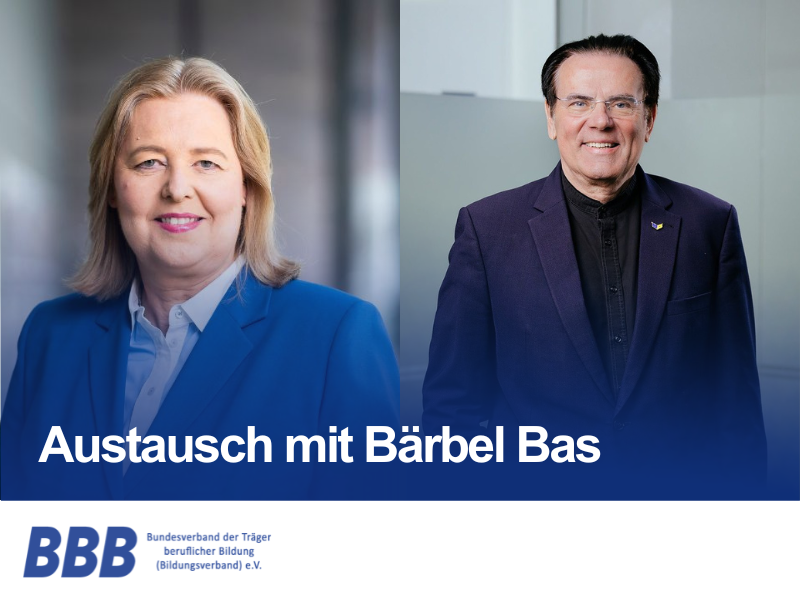Bundesministerin Bärbel Bas zeigte sich im Gespräch offen für die Anliegen der Branche und betonte, dass die Herausforderungen im Bereich Weiterbildung und Integration im Ministerium aufmerksam verfolgt werden. Der BBB wird den Dialog mit der Politik weiterhin aktiv fortsetzen.